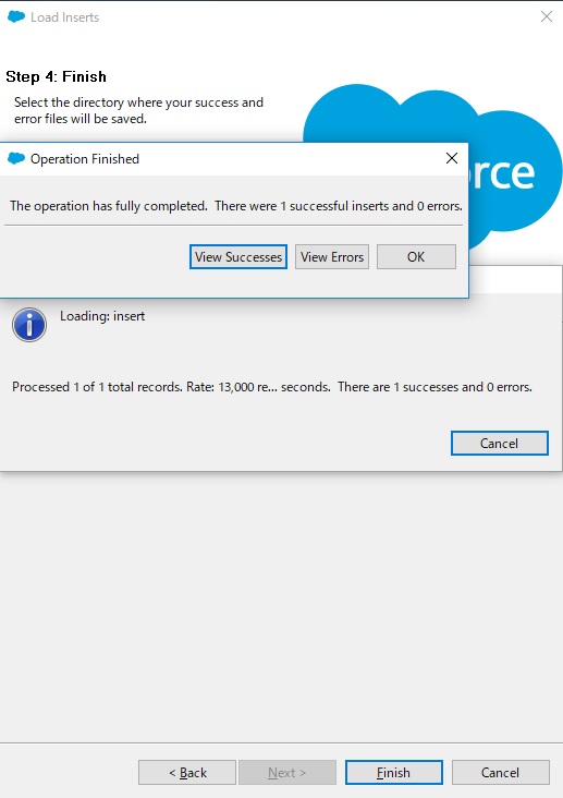 ※選んでいるファイルの中には実行データが1レコードなので1 successfulとなっている