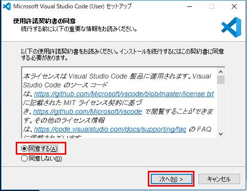 「同意する」を選んでください。
