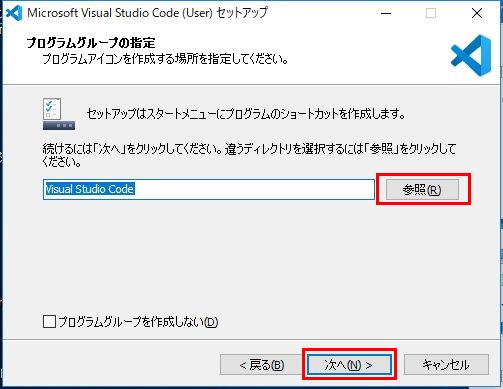 「参照(R)」をクリックして、スタートメニューで表示されるプログラムグループを指定します。