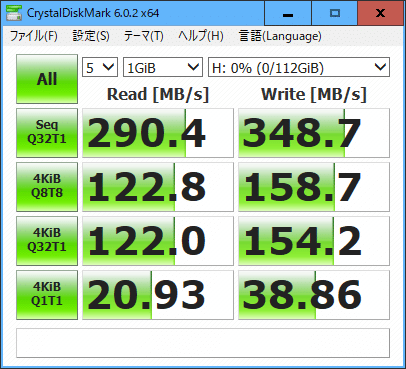 - CrystalDiskMark 6.0.2 x 64のデフォルト設定