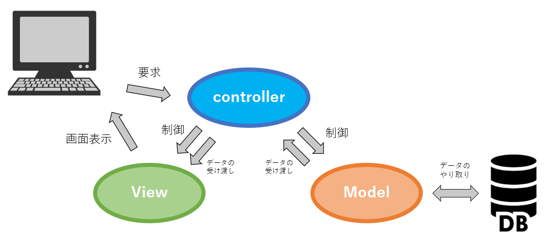 このように3つの役割に分けてコーディングを行うモデルを、MVCモデルと呼んでいるわけです。